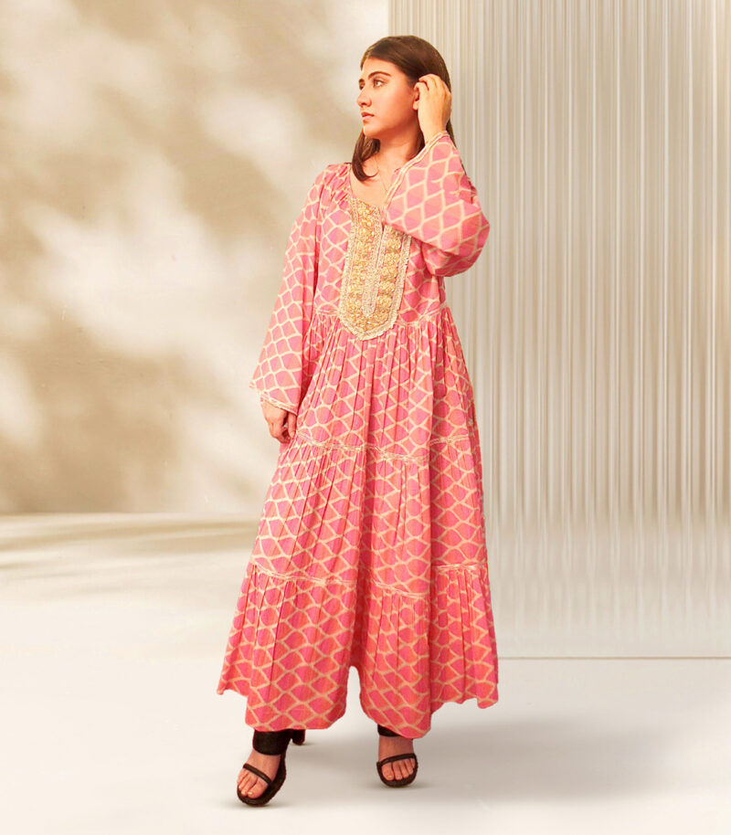 This exquisite handcrafted piece by Ritu Beri reflects true artistry and elegance, tailored exclusively for you. Each creation is a unique masterpiece, with slight variations in color, texture, and pattern from the image shown, due to intricate, artisan-led techniques and traditional processes. These subtle differences and charming imperfections are marks of authentic handcraftsmanship, celebrating the skill, dedication, and passion of each artisan. Ritu Beri’s legacy shines in every piece, making yours truly one of a kind. Embrace this rare creation as more than just clothing—it’s a work of art crafted to elevate your wardrobe with its distinct beauty and luxurious experience